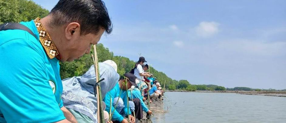 Setelah sambutan, seluruh peserta bergerak menuju kawasan pesisir untuk menanam mangrove. Anak-anak, perempuan, hingga orang tua, semua larut dalam suasana gotong-royong. Setiap bibit mangrove yang ditanam bukan hanya simbol perlawanan terhadap abrasi, tetapi juga harapan akan masa depan pesisir yang lebih hijau dan berkelanjutan. Di sela acara, diserahkan pula sebuah pompa air untuk membantu warga menghadapi banjir rob yang kerap melanda desa.